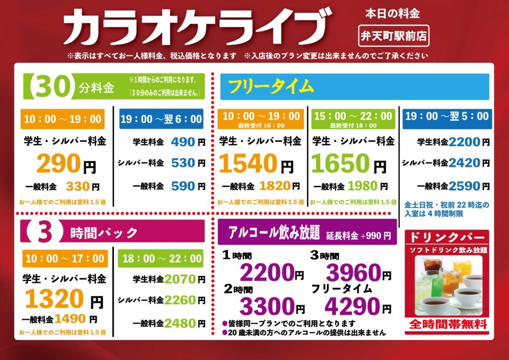 「カラオケライブ弁天町駅前店」では、たっぷり3時間歌ってもリーズナブルなパックプランをご用意しています。