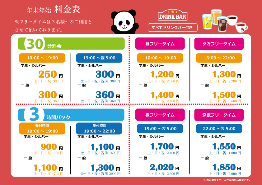フリータイムは稼働状況により受付組数の制限を設けさせていただく場合がございます。