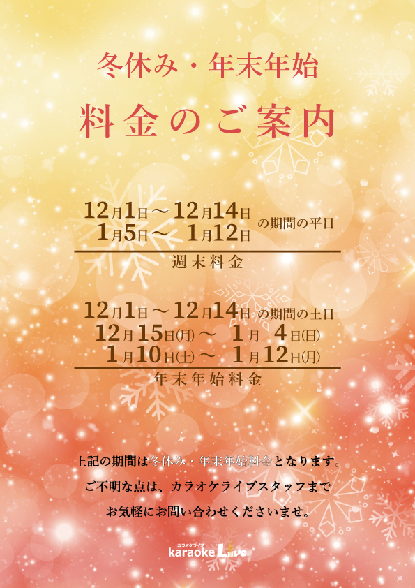 年末年始料金はこちら
