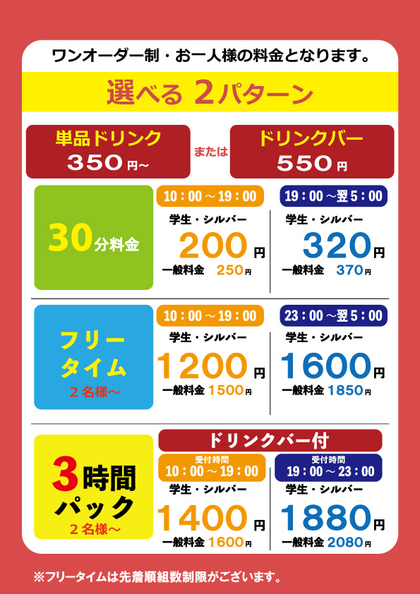 時期により料金が異なる場合がございますので、直接店舗へ問い合わせください。